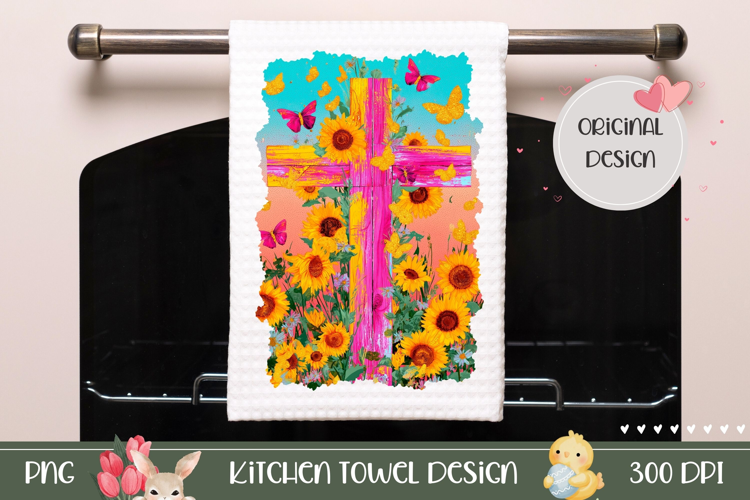 Pink Easter Cross Towel PNG, Sunflowers Towel Template example image 1