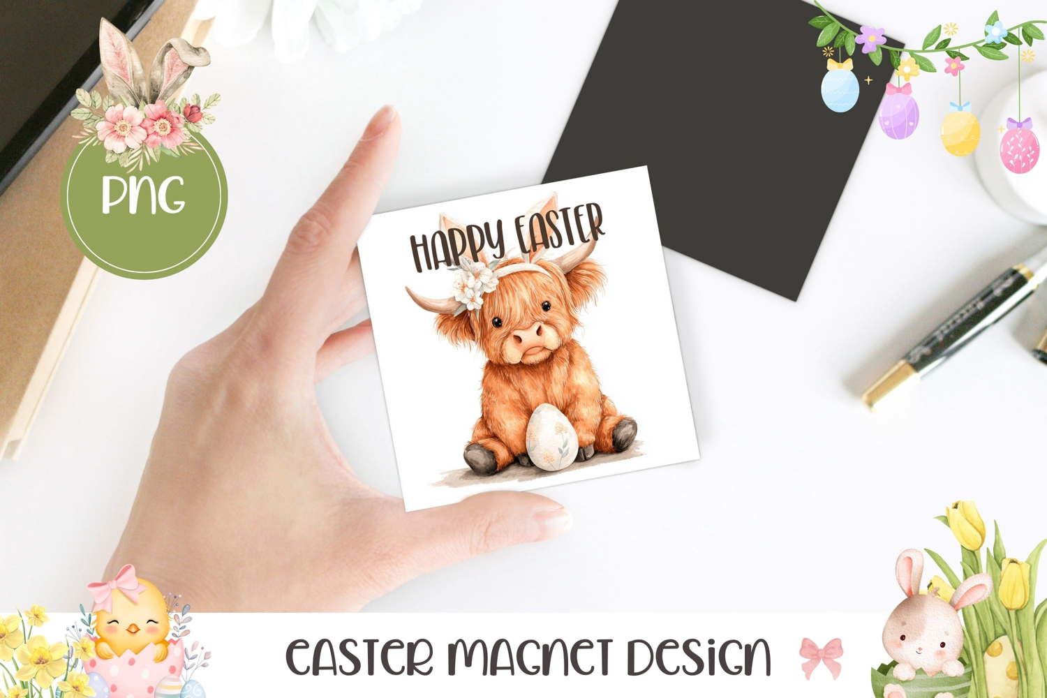 Highland Cow Magnet PNG, Happy Easter Magnet Template example image 1