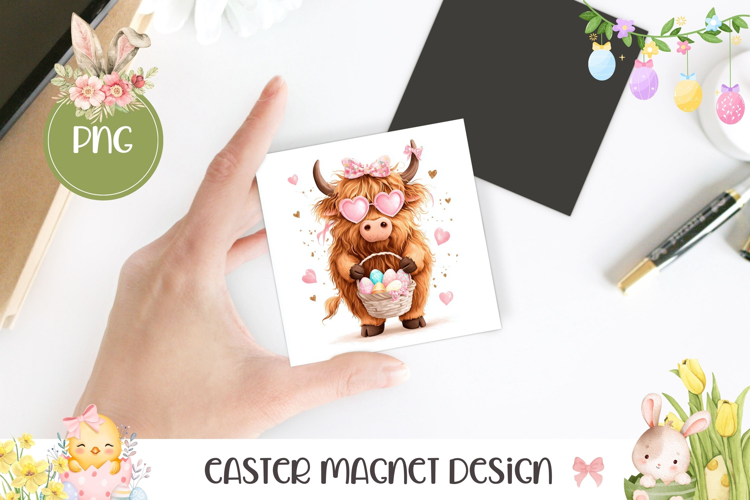 Funny Easter Cow Magnet PNG, Cute Cow Square Coaster example image 1
