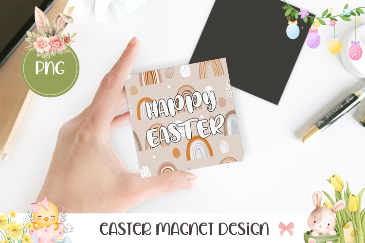 Happy Easter Magnet PNG, Boho Rainbow Square Coaster example image 1