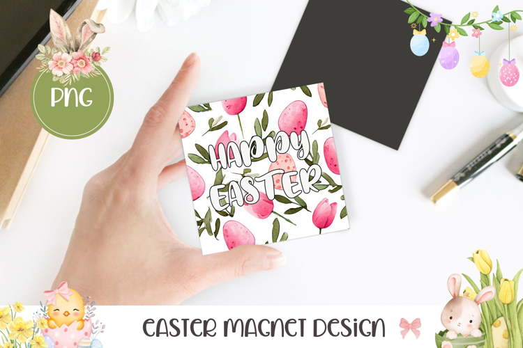 Easter Eggs Magnet, Easter Square Coaster Template example image 1