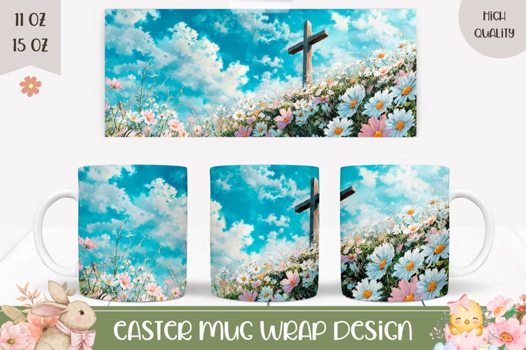 Easter Cross Sublimation Cross Floral Christian Cross Sublimation Floral Christian Cross Easter Mug Template Christian Sublimation Mug Religious Mug Wrap Christian Mug Wrap Design Christian Cross Mug Wrap Easter Coffee Mug Png
