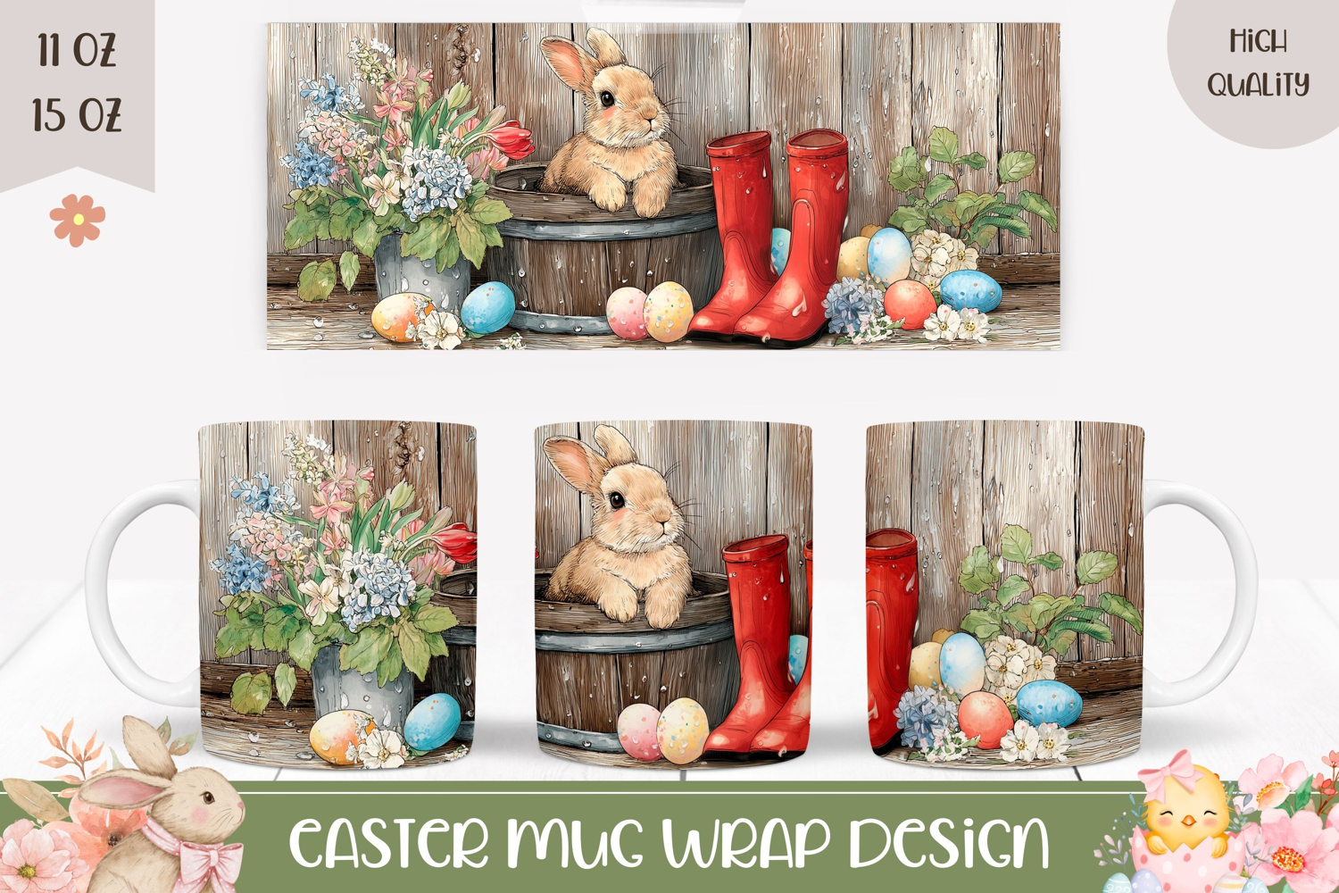 Easter Bunny Mug Wrap, Spring Flowers Mug Sublimation