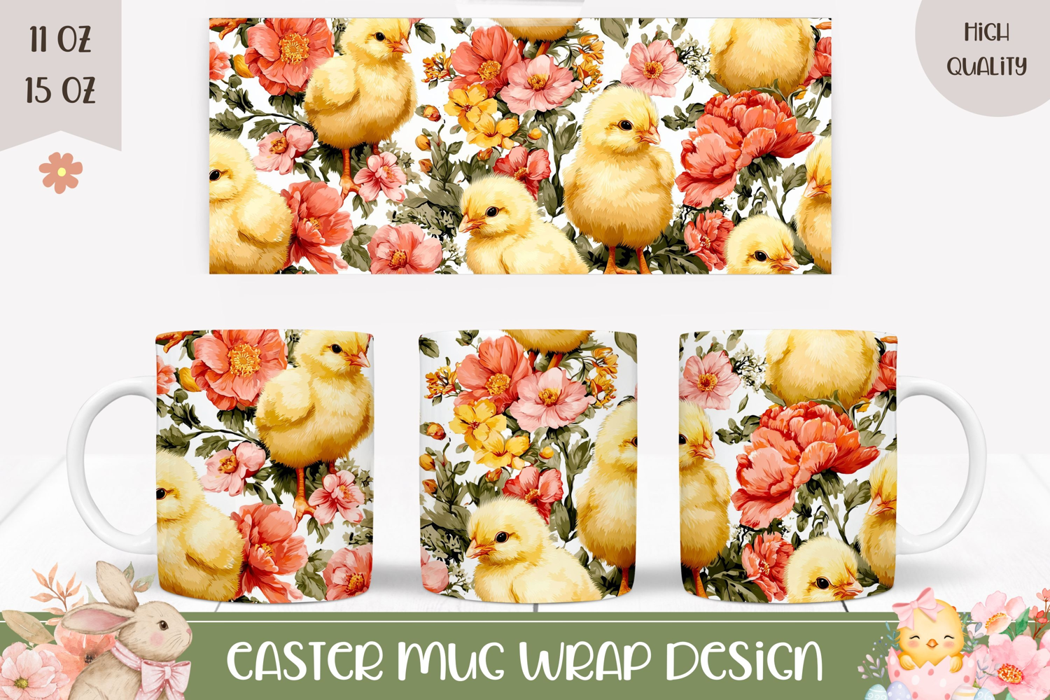 Easter Chick Mug Design, Floral Mug Sublimation example image 1