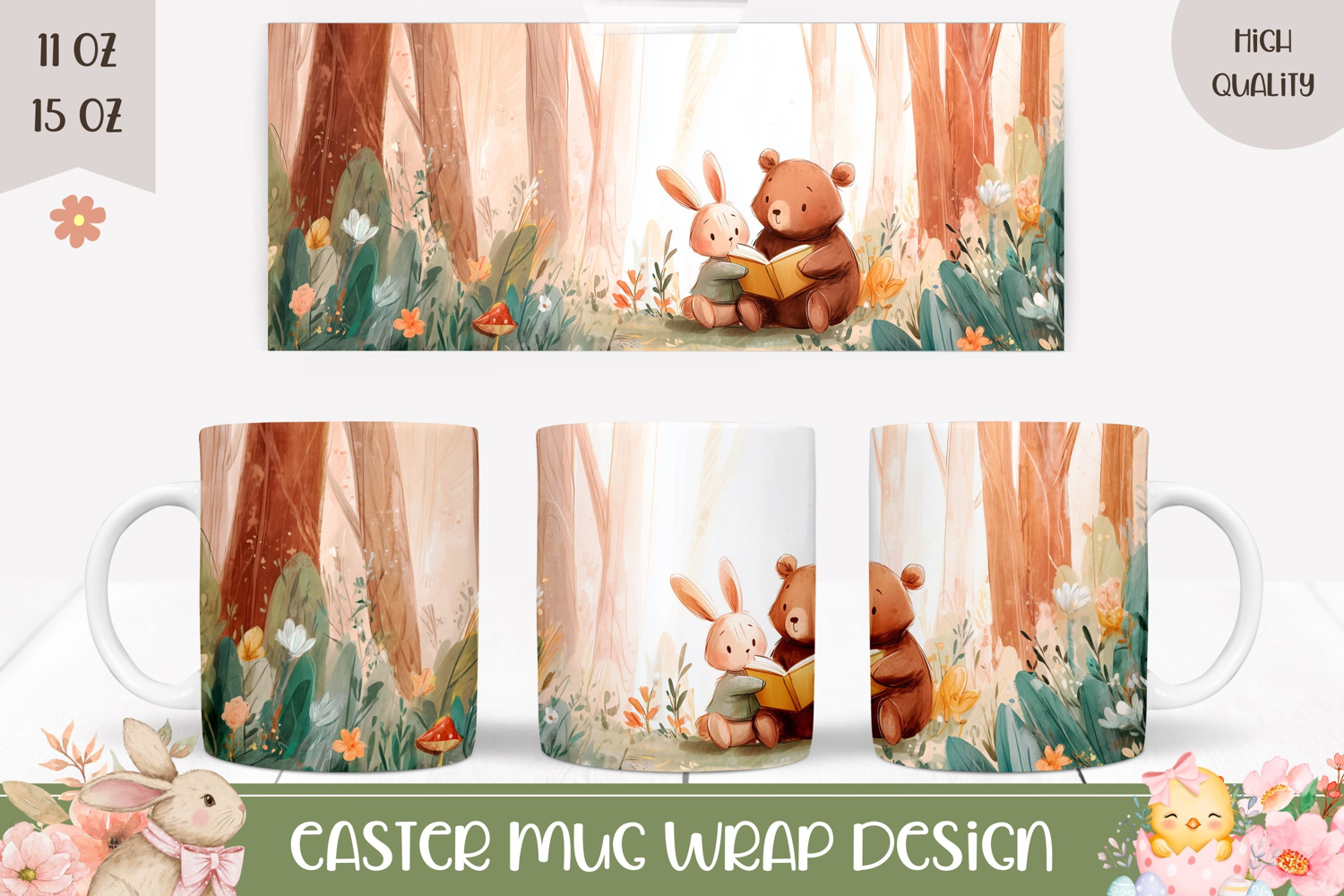 Easter Bunny Mug Design, Cartoon Forest Mug Sublimation