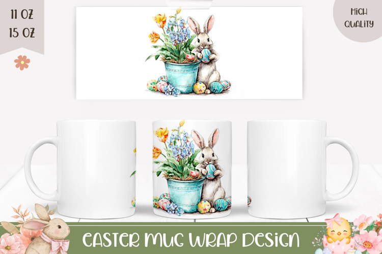Easter Eggs Easter Sublimation Design Spring Sublimation Design Easter Mug Sublimation White Rabbit Mug Design Easter Bunny Mug Wrap Design Spring Mug Png Easter Coffee Mug Wrap Flowers Mug Template Cute Bunny Mug Design