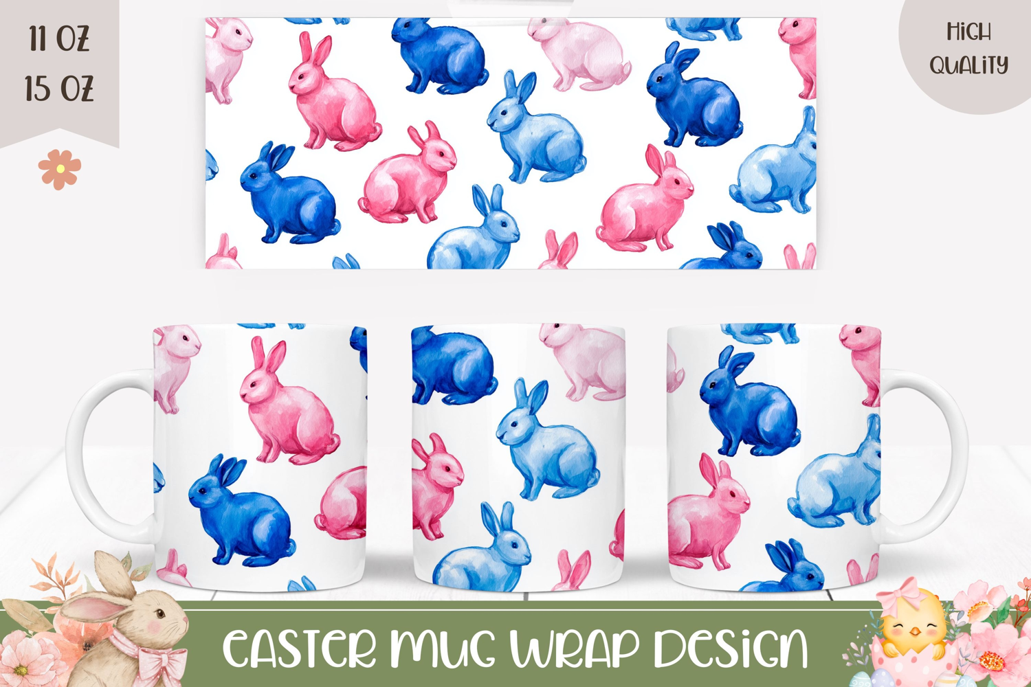 Watercolor Easter Bunny Mug Design, Easter Mug Sublimation