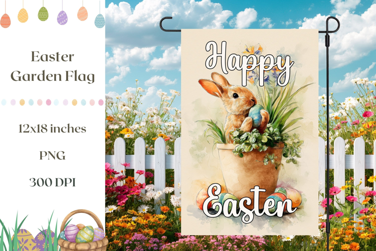 Floral Easter Garden Flag Template, Happy Easter Print example image 1