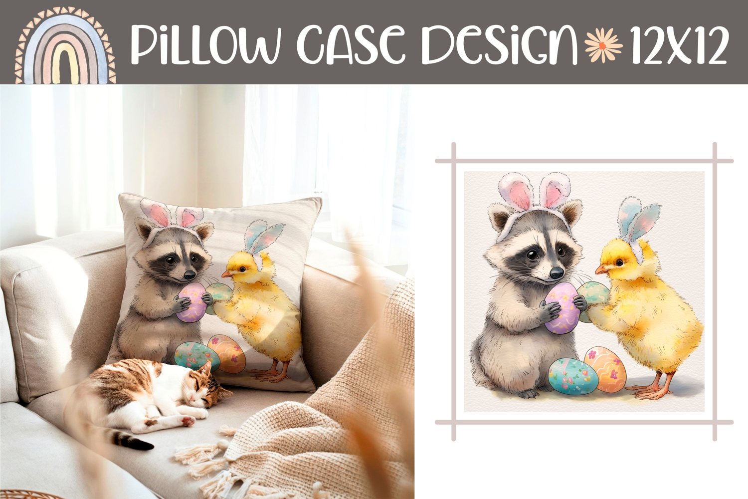 Easter Raccoon Pillow case, Easter Eggs Pillow Template example image 1