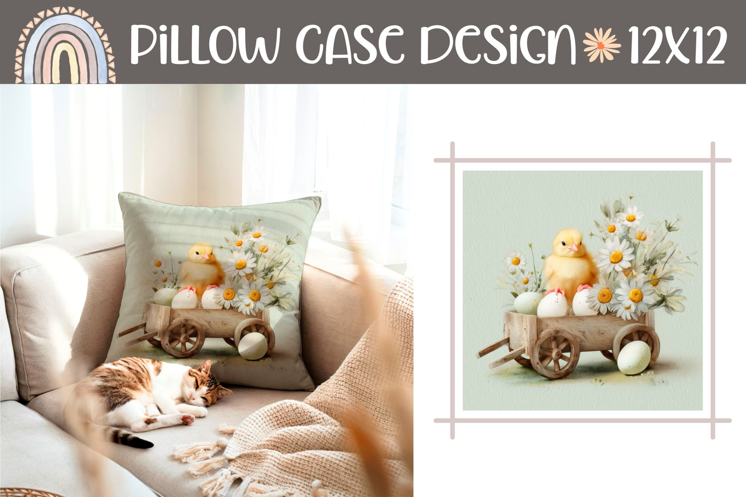 Easter Eggs Pillow Case Design, Floral Easter Chick Pillow