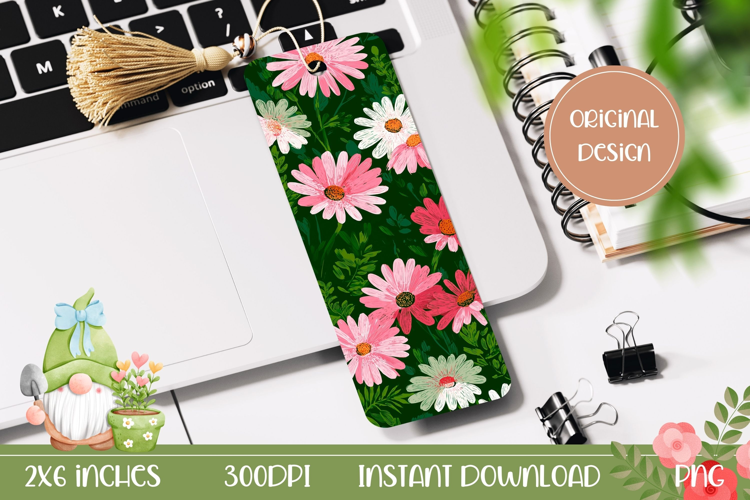 Floral Bookmark Print, Pink Daisy Bookmark Sublimation