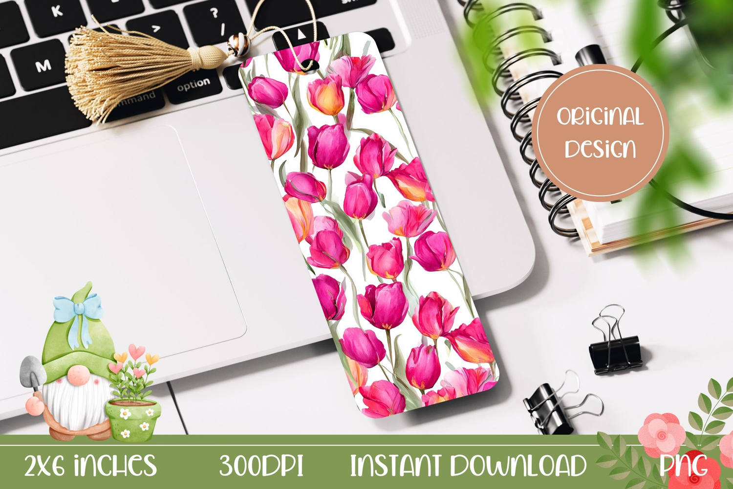 Similar Design Products to Pink Tulips Bookmark Print, Floral Bookmark Design
