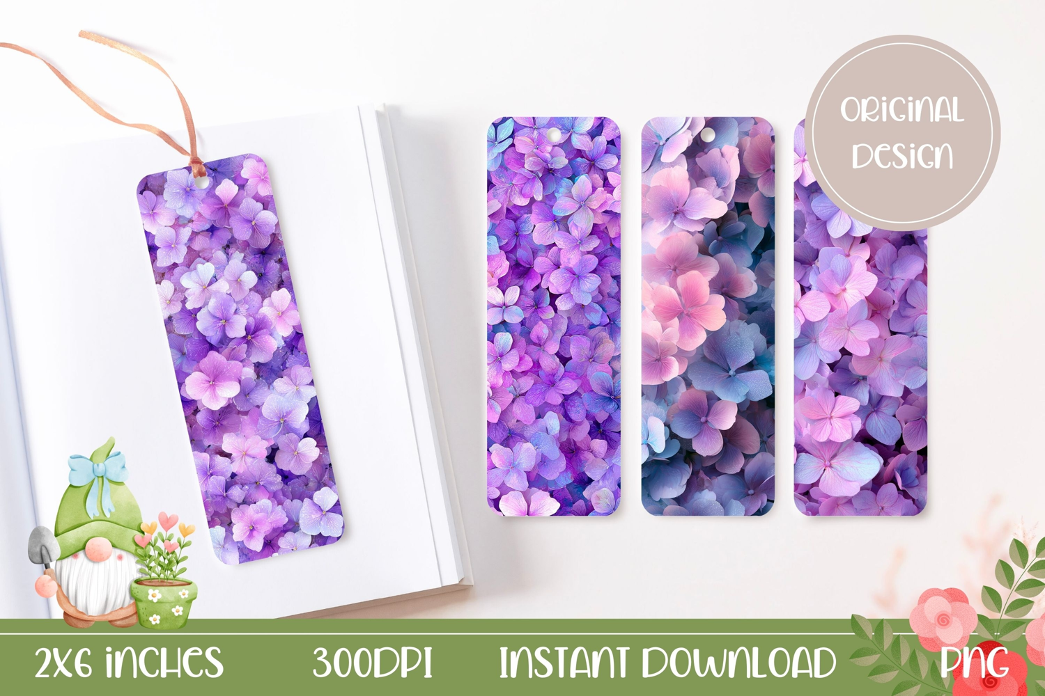 Purple Flowers Bookmark Designs, Hydrangea Bookmark Print