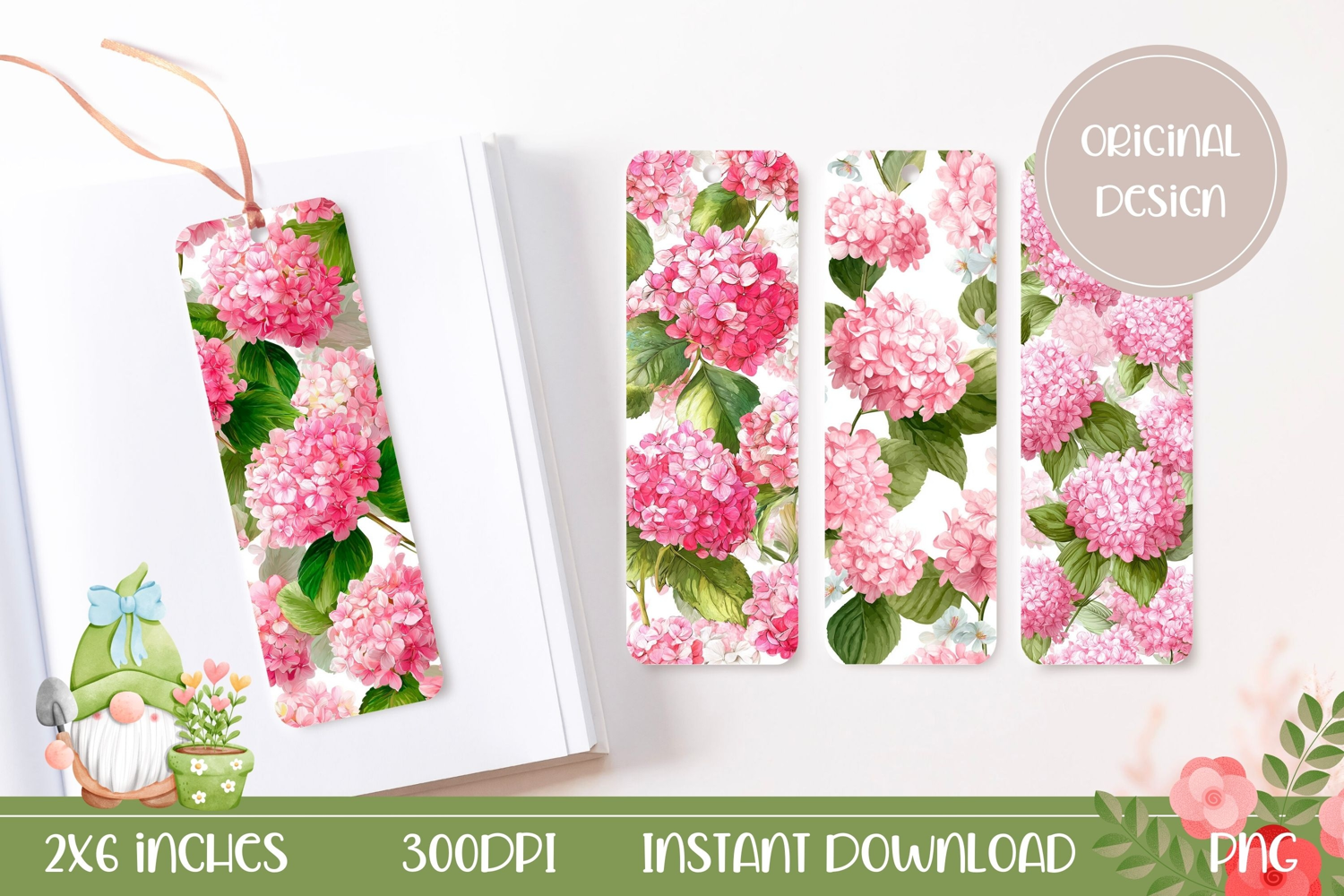 Pink Hydrangea Bookmark Designs, Spring Bookmark