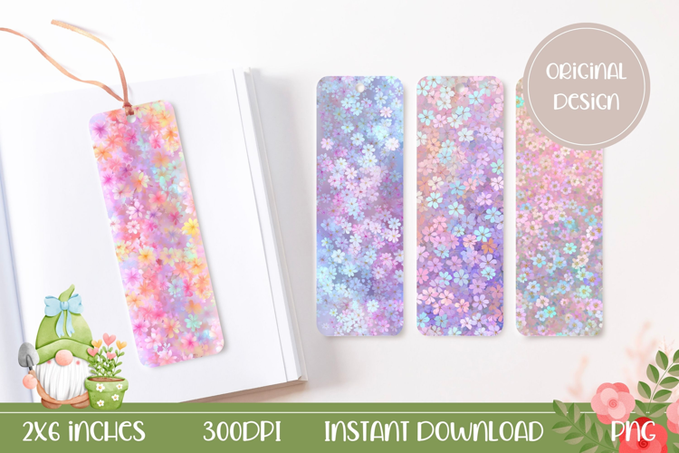 Holographic Flowers Bookmark Designs, Cute Bookmarks example image 1