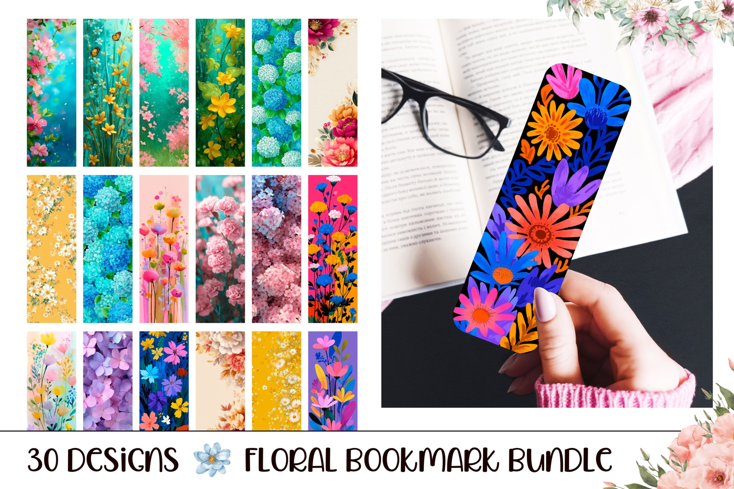 Floral Bookmark Sublimation Bundle. Colorful sublimation designs with gorgeous flowers.