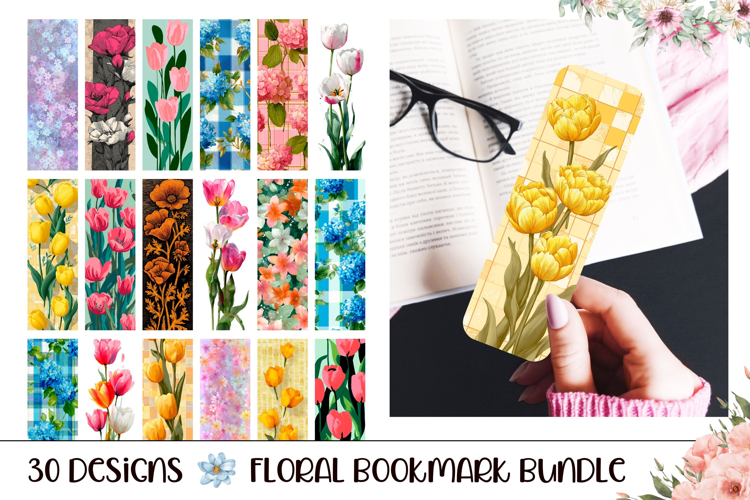 Floral Bookmark Sublimation Bundle. Colorful sublimation designs with gorgeous flowers.