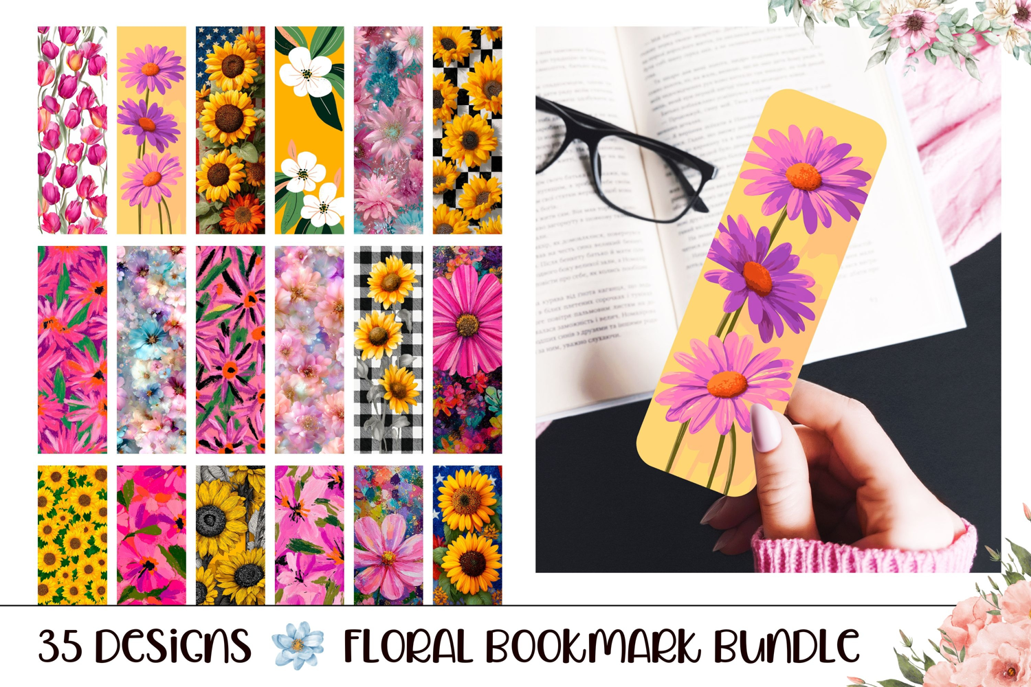 Floral Bookmark Sublimation Bundle. Colorful sublimation designs with gorgeous flowers.