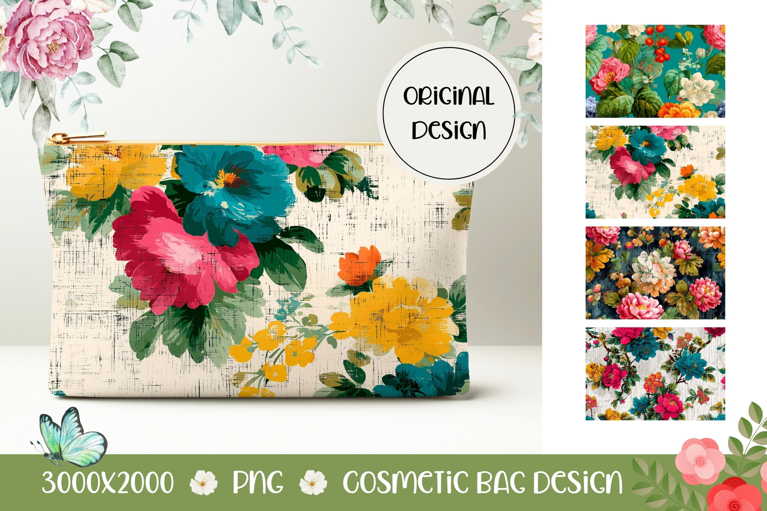 Similar Design Products to Cartoon Cosmetic Bag Designs, Vintage Flowers Cosmetic Bag