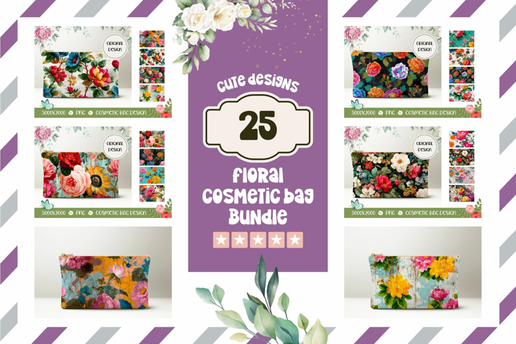 Cute Cosmetic Bag Bundle, Floral Cosmetic Bag Designs example image 1