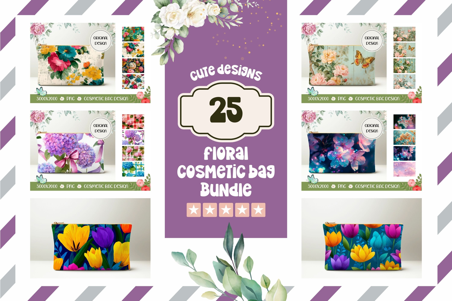 Cute Cosmetic Bag Bundle, Flowers Cosmetic Bag Designs