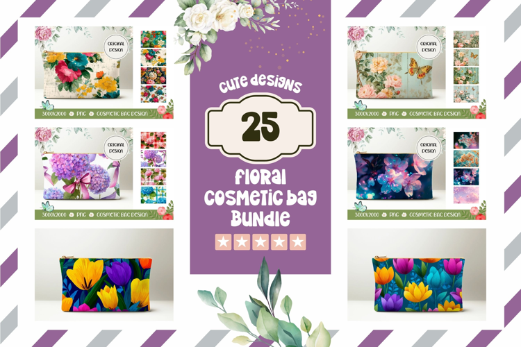 Cute Cosmetic Bag Bundle, Flowers Cosmetic Bag Designs example image 1