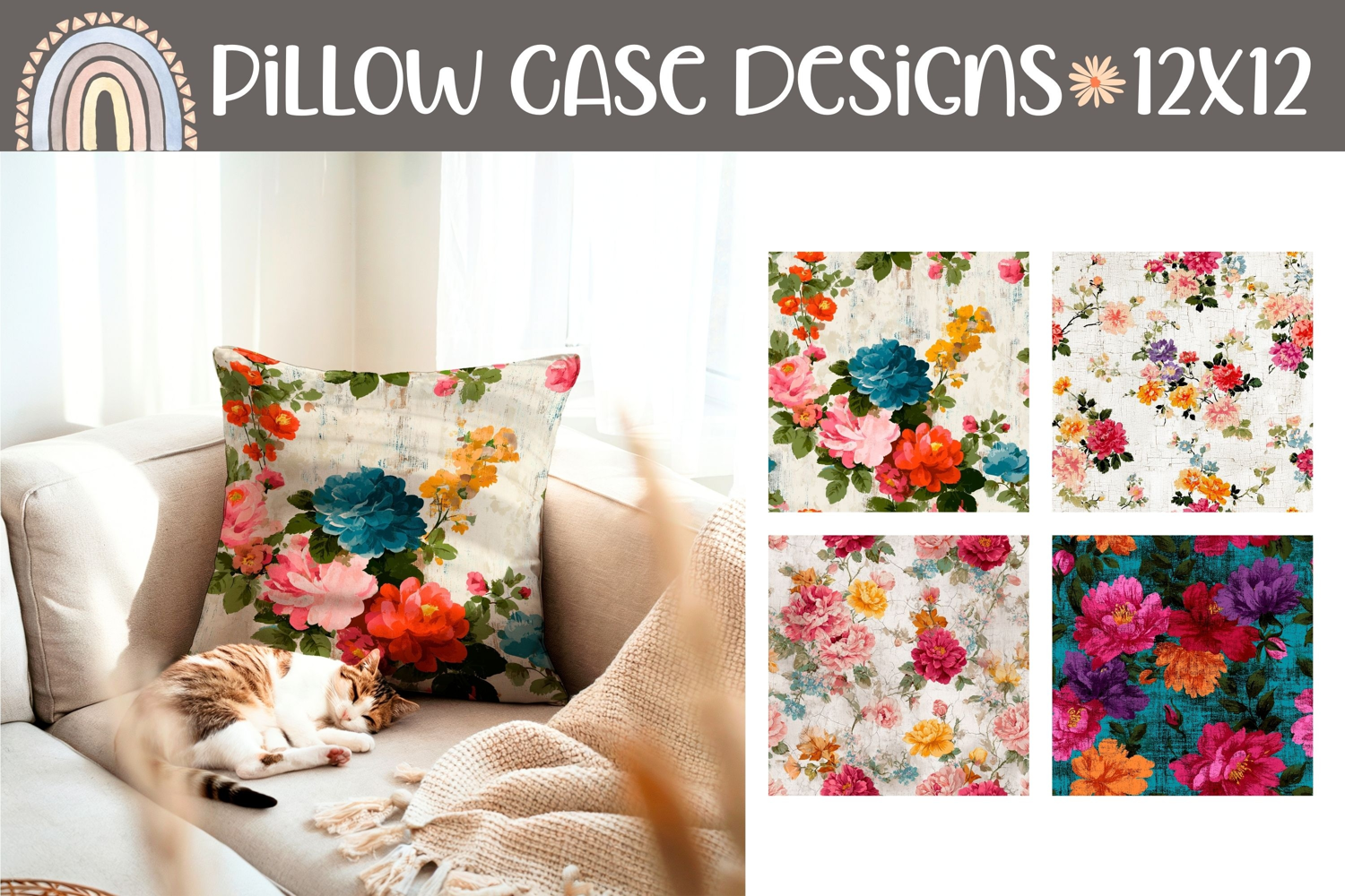 Flowers Digital Paper Home Decor Floral Print Flowers Png Floral Pillow Design Vintage Pillow Sublimation Floral Pillowcase Summer Pillow Cover Nature Pillow Print Spring Pillow Case
