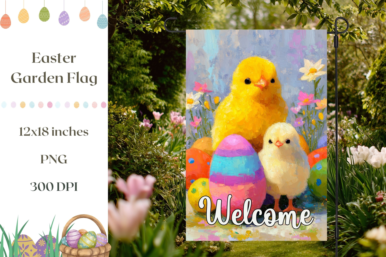 Welcome Garden Flag Design, Easter Chicks Garden Flag PNG example image 1