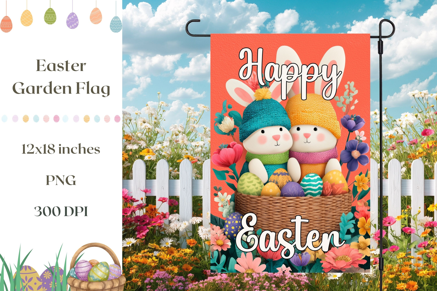 Happy Easter Easter Eggs Png Easter Sublimation Design Spring Garden Flag Easter Garden Flag Cartoon Bunny Sublimation Welcome Garden Flag Easter Bunny Garden Flag Christian Bunny Png Flowers Sublimation Easter