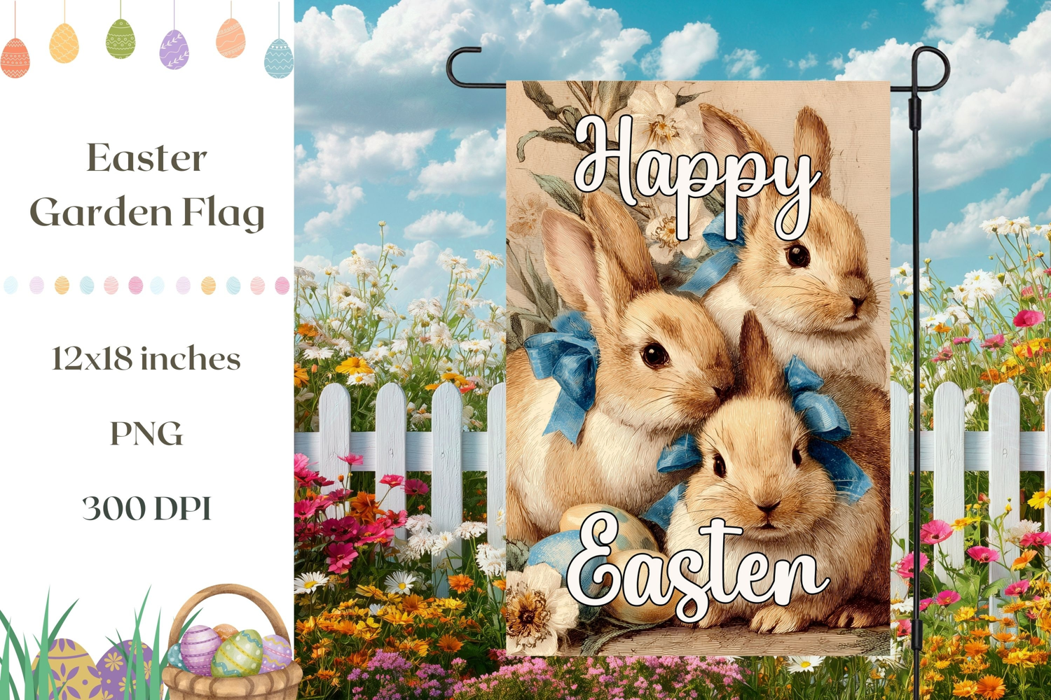 Happy Easter Easter Eggs Png Easter Sublimation Design Spring Garden Flag Easter Garden Flag Cartoon Bunny Sublimation Welcome Garden Flag Easter Bunny Garden Flag Christian Bunny Png Flowers Sublimation Easter