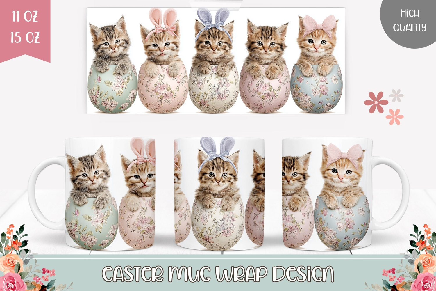 Easter Png Easter Mug Design Easter Sublimation Floral Mug Spring Mug Template Easter Eggs Mug Easter Coffee Mug Png Easter Cow Png Cartoon Cat Sublimation Easter Cat Mug Wrap