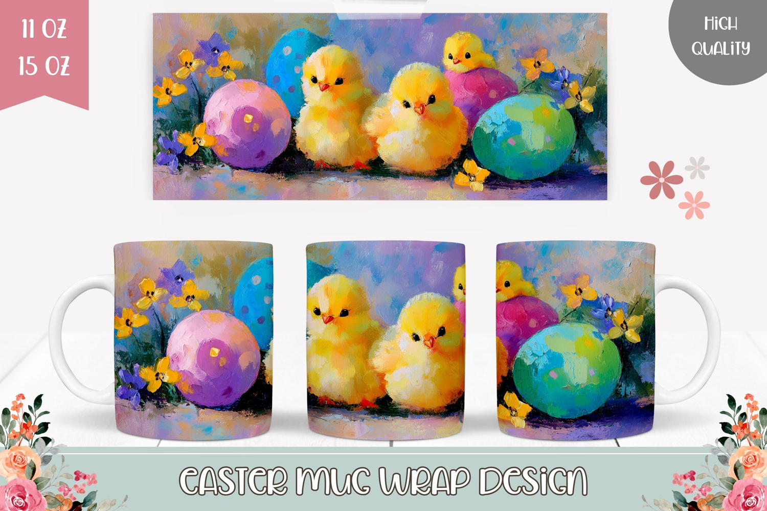 Colorful Easter Chick Mug Wrap, Easter Egg Mug Design
