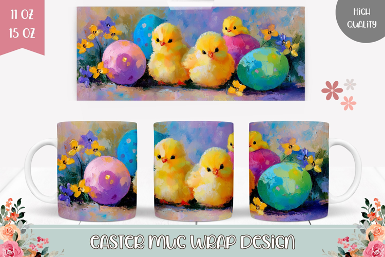 Colorful Easter Chick Mug Wrap, Easter Egg Mug Design example image 1