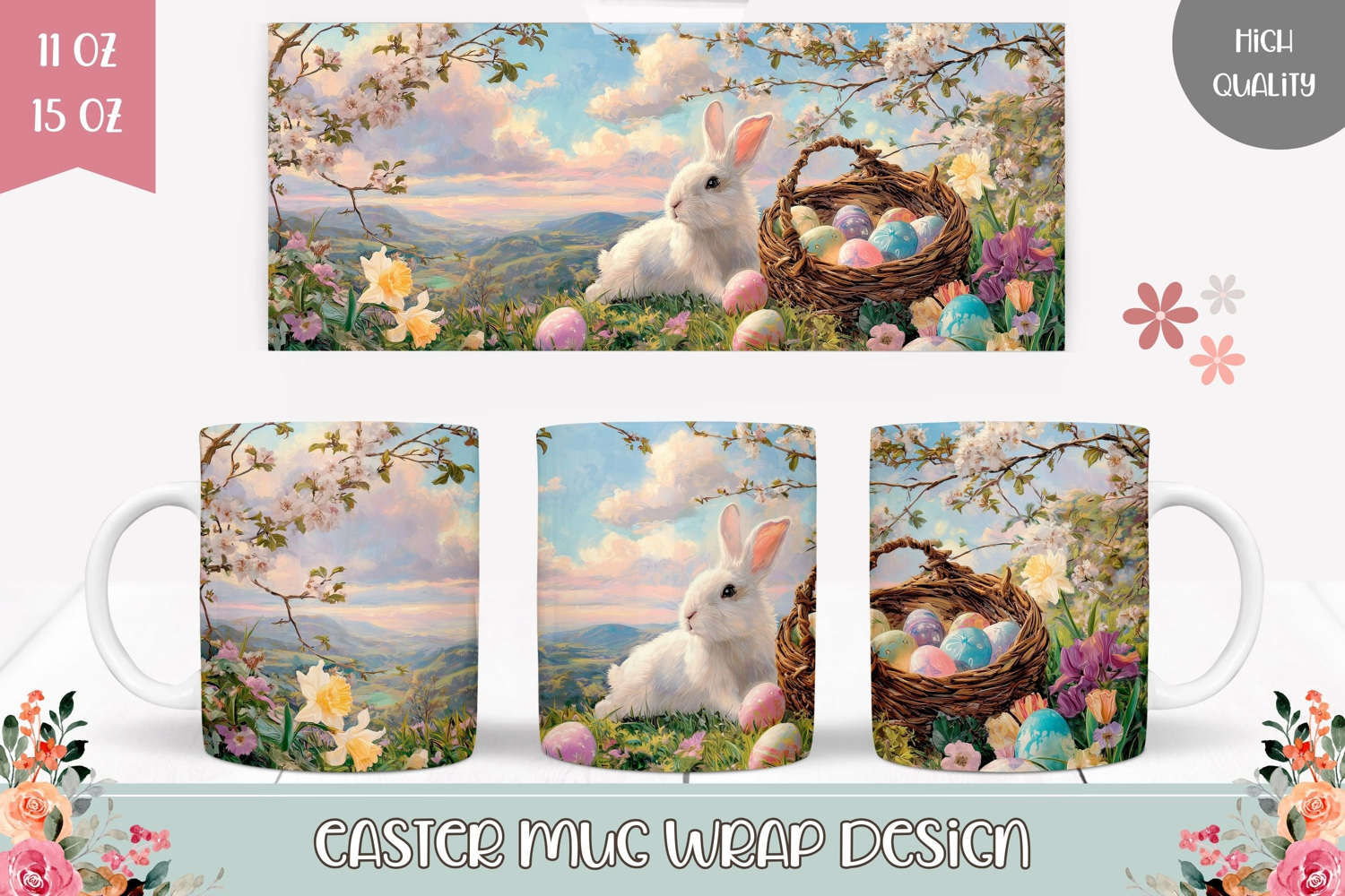 Easter Eggs Easter Sublimation Design Spring Sublimation Design Easter Mug Sublimation White Rabbit Mug Design Easter Bunny Mug Wrap Design Spring Mug Png Easter Coffee Mug Wrap Flowers Mug Template Cute Bunny Mug Design