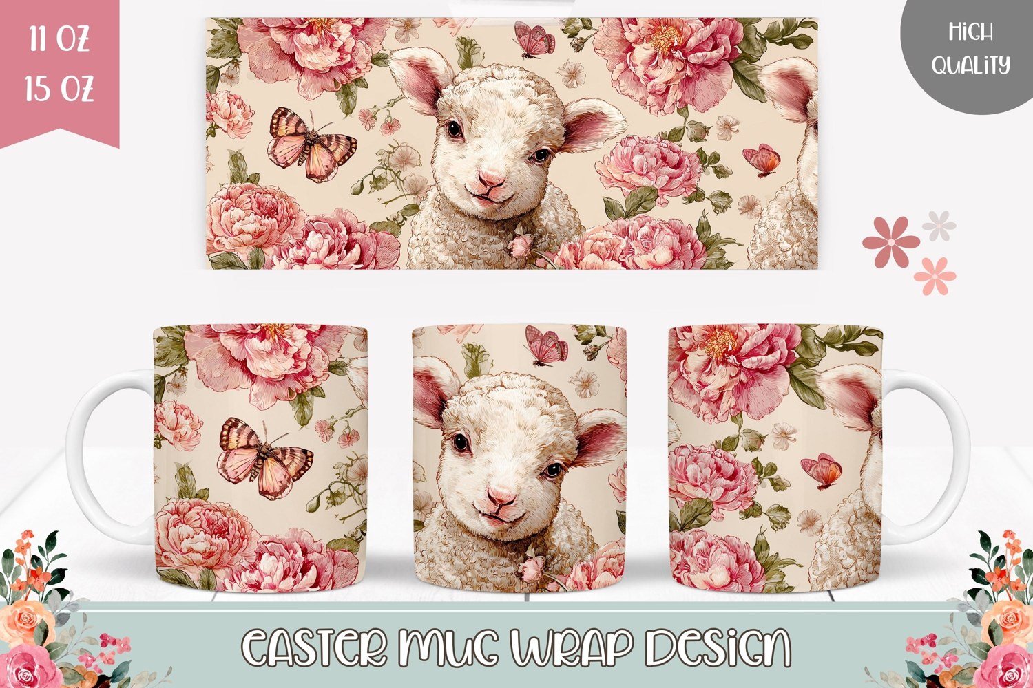 Floral Easter Lamb Mug Design, Easter Mug Template