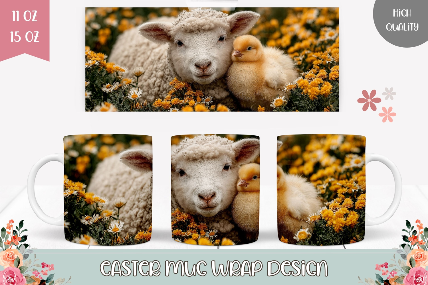 Easter Lamb Mug Design, Easter Chick Mug Template