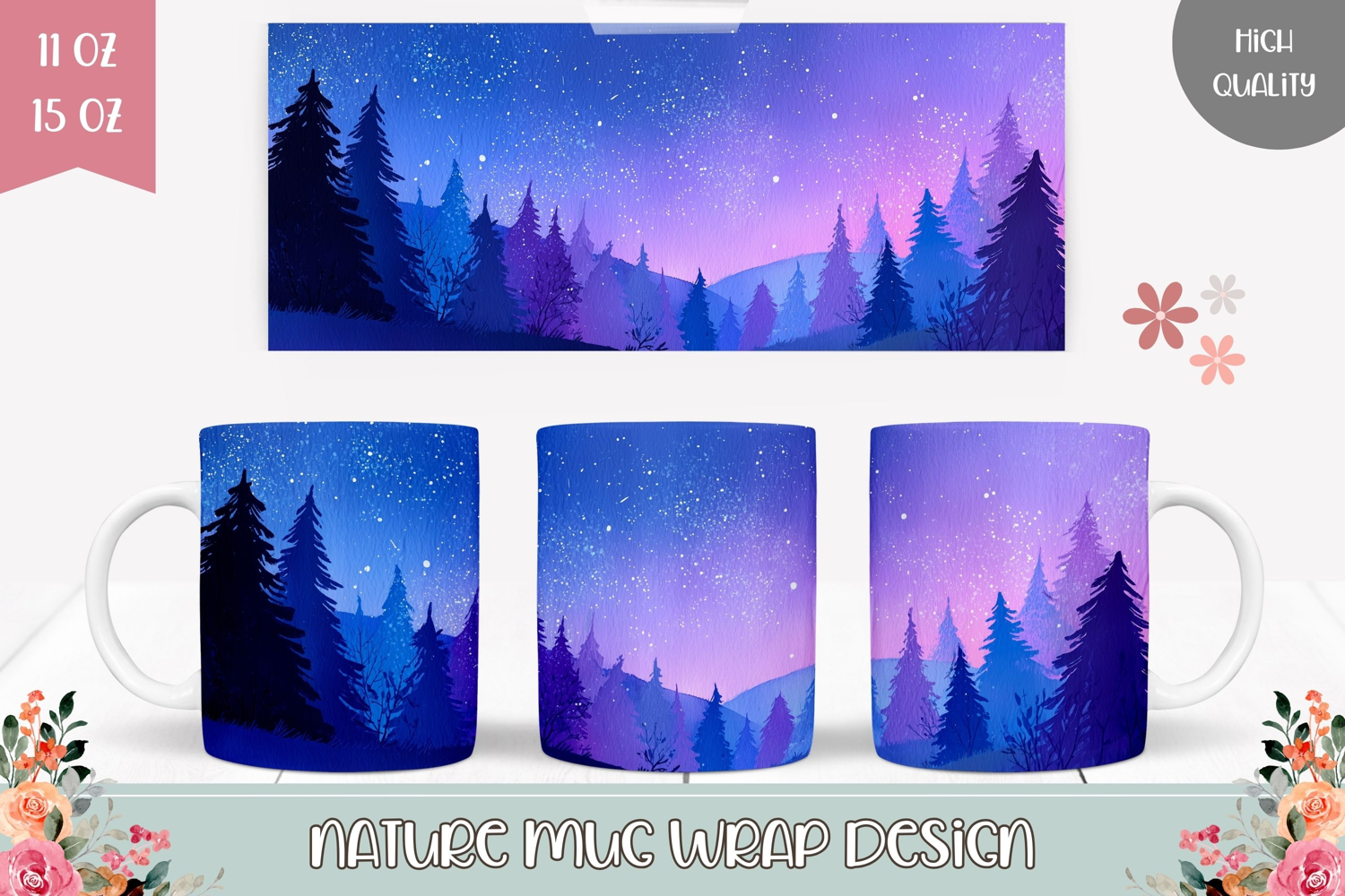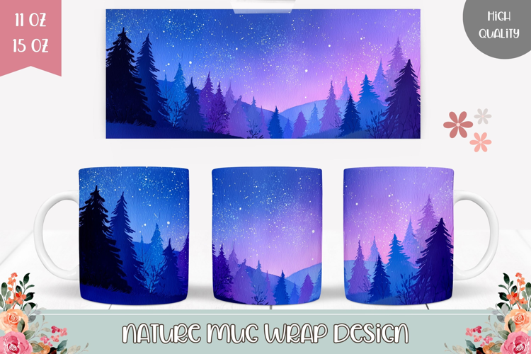 Night Sky Mug Sublimation, Forest Mug Wrap Design