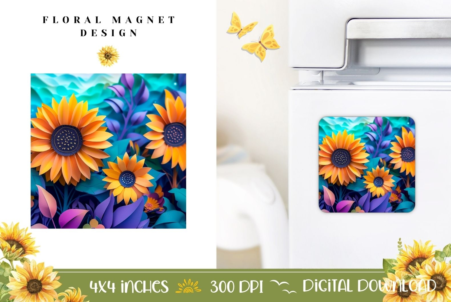 Flowers Magnet Template, Paper Sunflowers Magnet Design example image 1