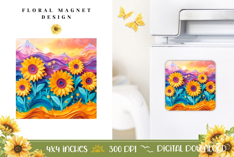 Paper Flowers Magnet Design, Sunflowers Magnet Sublimation example image 1