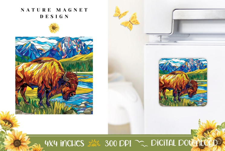 Stained Glass Bison Magnet Design, Nature Magnet Print example image 1