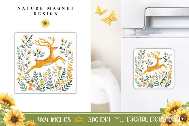 Cartoon Deer Magnet Print, Floral Animals Magnet Design