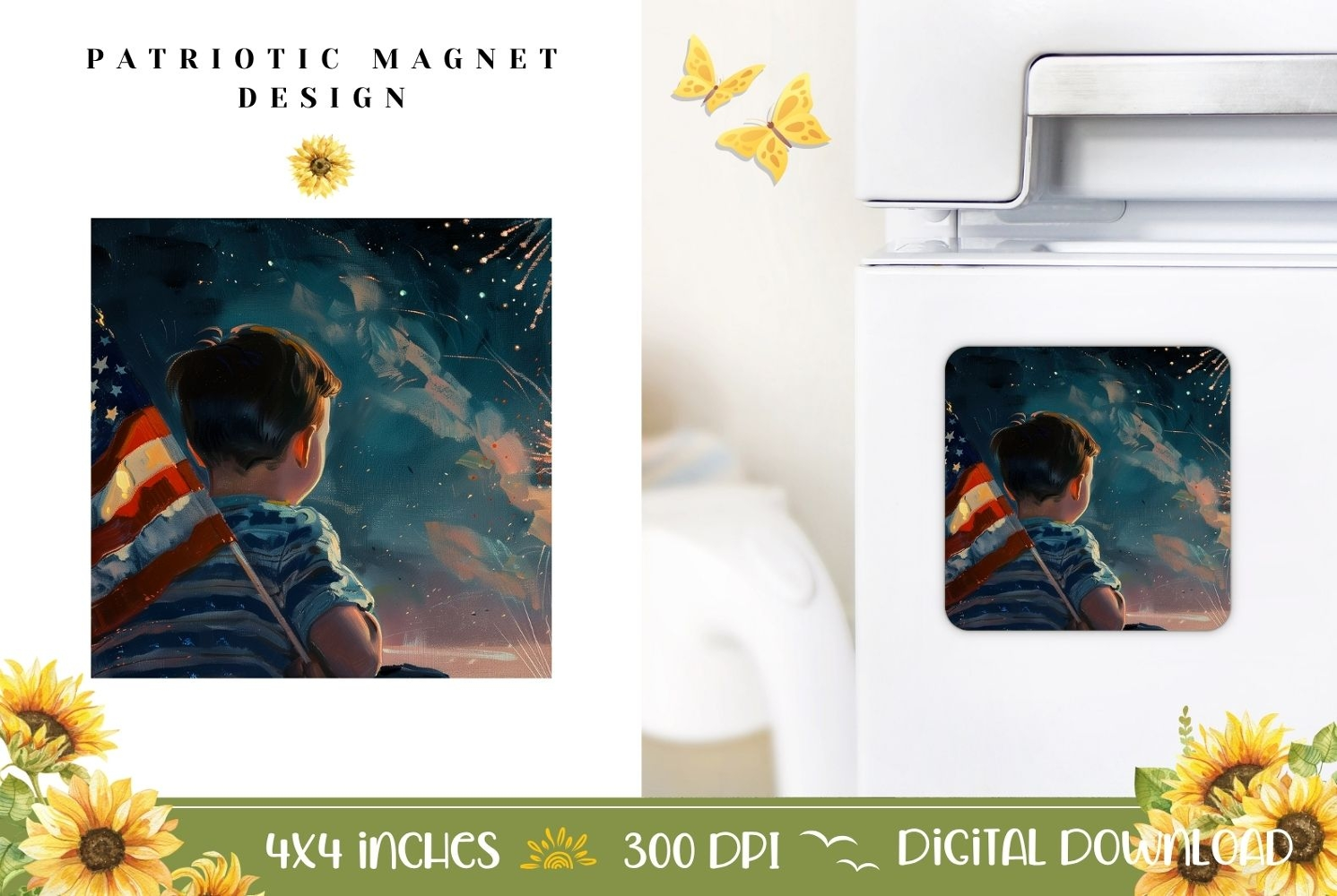 Similar Design Products to 4th of July Magnet Template, American Flag Magnet Print