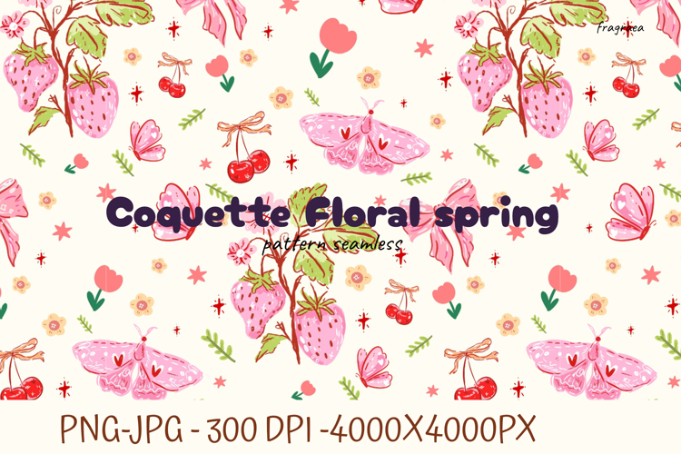 Coquette Spring floral Strawberry pattern seamless Fabric example image 1