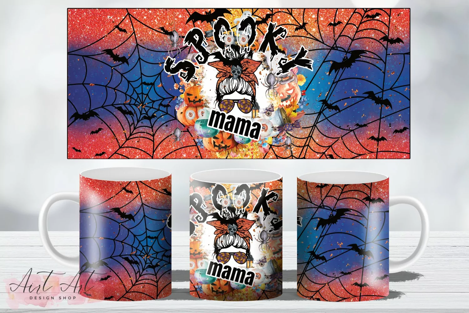 Elevate your coffee breaks with our Halloween Cobweb Bat Spooky Mama Coffee Mug Wrap. A bewitching way to enjoy your brew this Halloween season!
