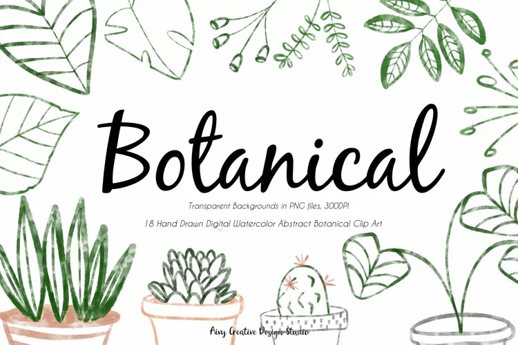 18 Hand Drawn Minimalist Botanical Abstract Clip Art Bundle