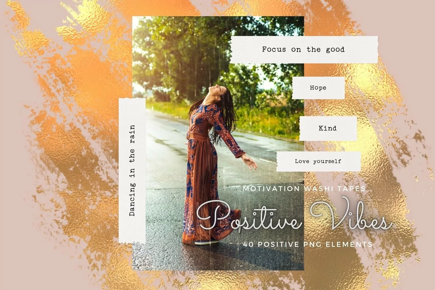 * 40 Positivity Text Washi Tapes in transparent PNG Files