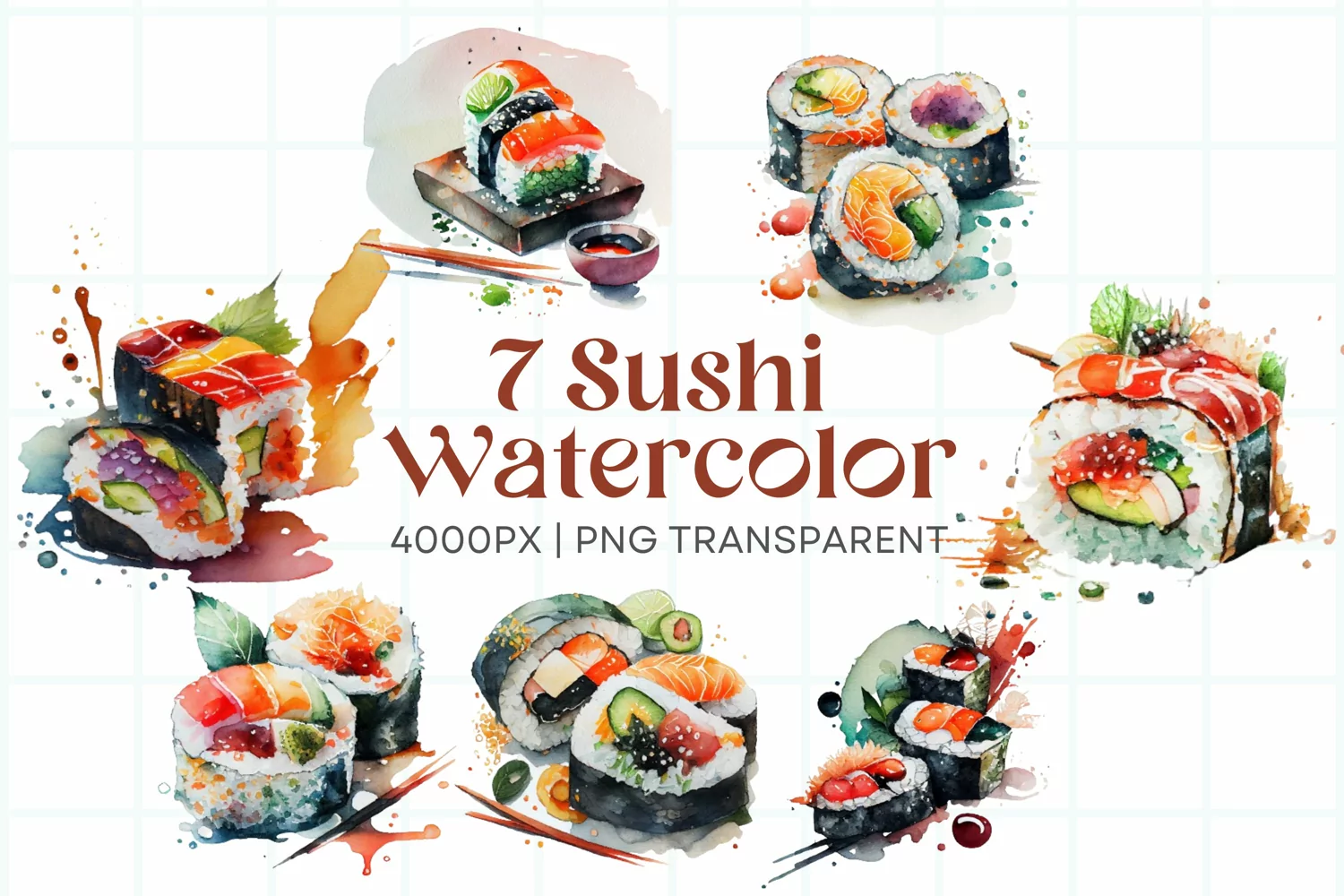Similar Design Products to 8 Sushi Watercolor Sublimation Bundle Png