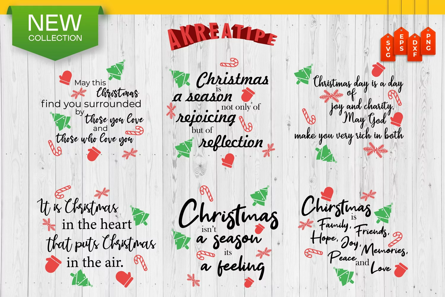 I have provided my Christmas Quotes in SVG, EPS, DXF and PNG format, which will also be useful for crafters.