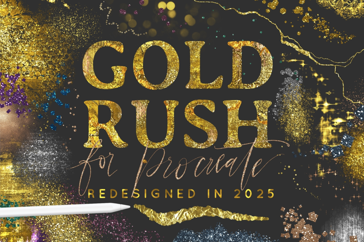 In short, this update makes Gold Rush the most polished, powerful metallic Procreate brush set yet. Paint, draw, scatter, and letter your way to dazzling results directly on your iPad with your Apple Pencil.