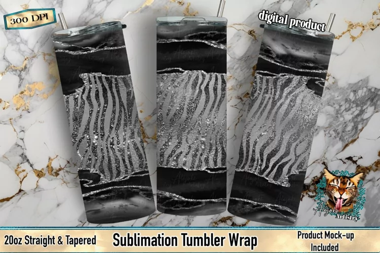 This is a agate black and silver tiger print tumbler design. This is a seamless tumbler wrap sized to fit 20oz skinny tumblers that can be used in waterslide tumbler wrap design and printed vinyl tumbler wrap craft projects.